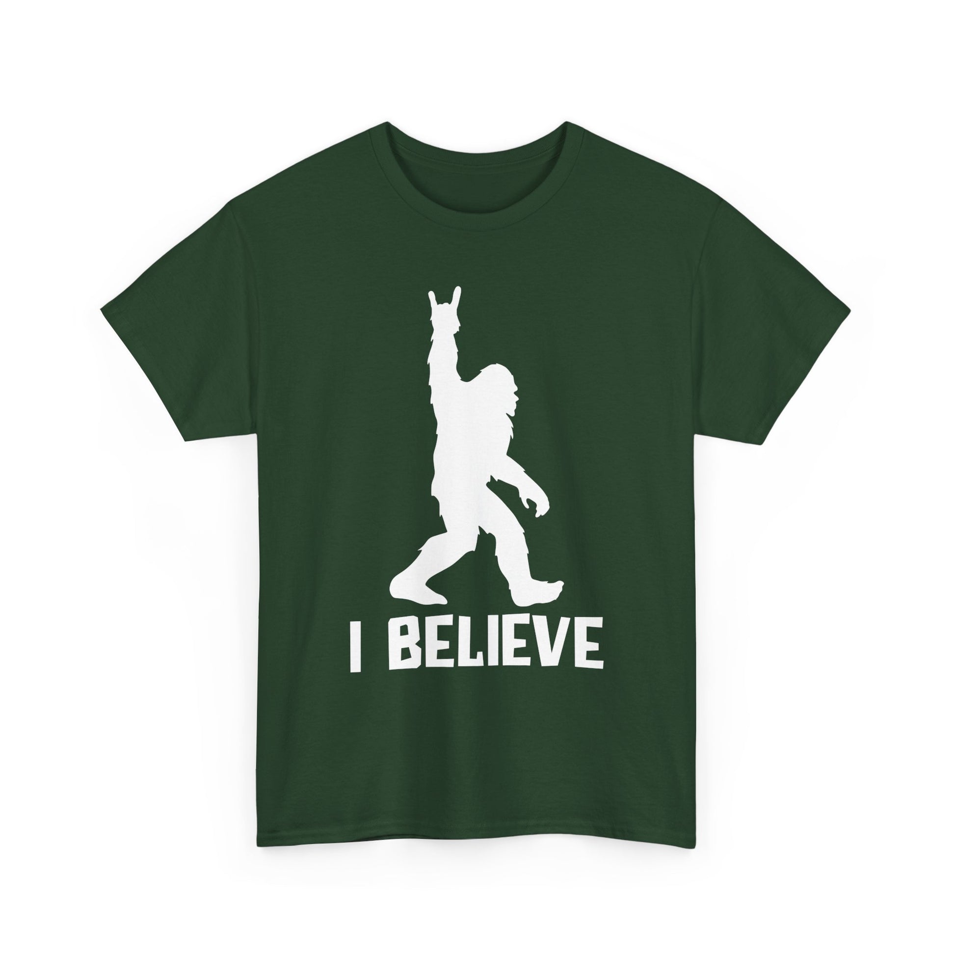A laid-back tee for anyone who likes a wink of mystery and a good laugh. The bold silhouette of a lumbering Sasquatch and the simple declaration “I BELIEVE” sit front-and-center, giving this shirt an offbeat, campfire-ready vibe. Lightweight yet sturdy cotton holds the print crisply while the relaxed crew neck and classic fit keep it comfortable for all-day wear. Wear it to local meetups, late-night drives, or while swapping tall tales around a smoky fire — it reads like a nod to curiosity and fun, not a claim. Subtle details like a tear-away label and stable shoulder tape keep the shirt feeling good even after repeated wear.