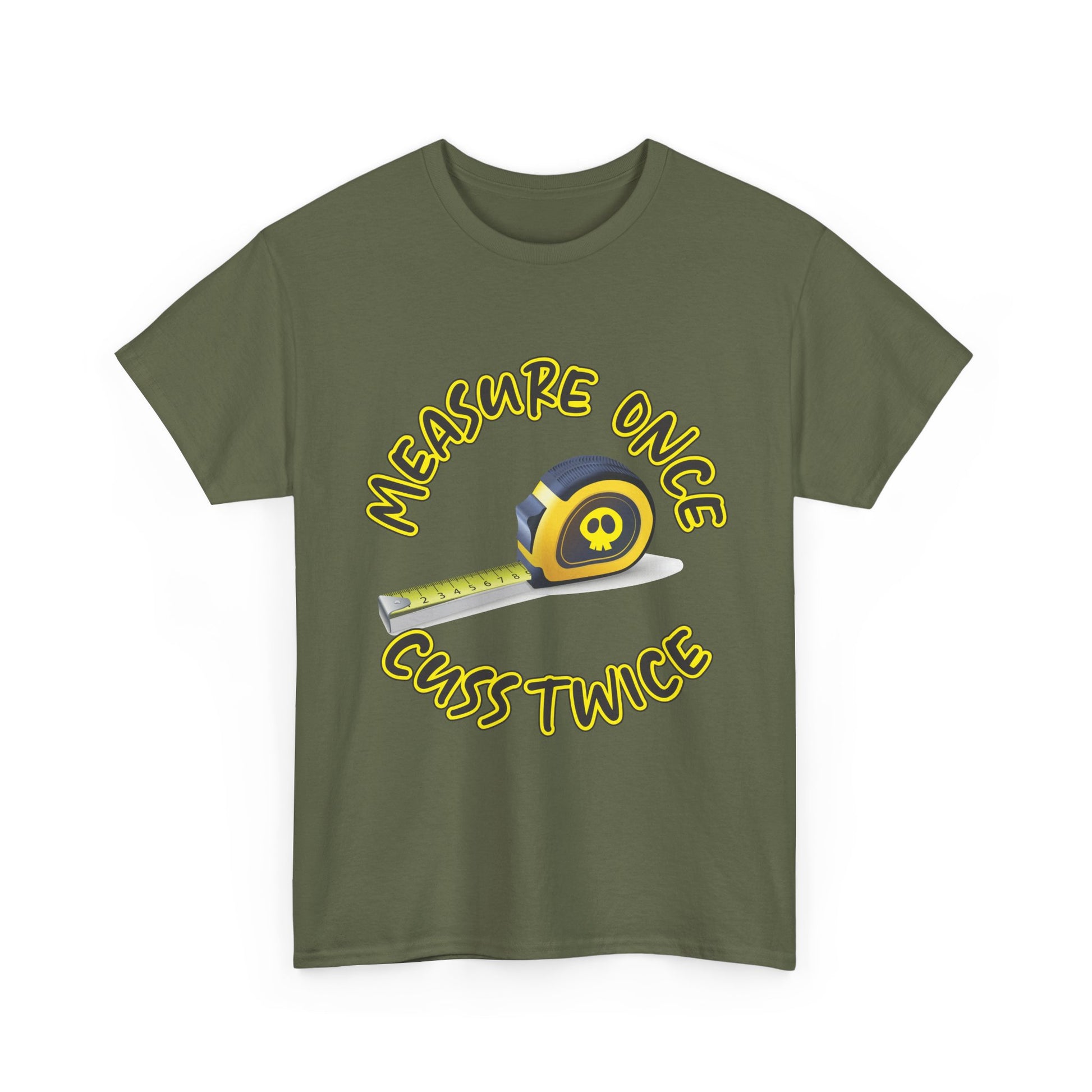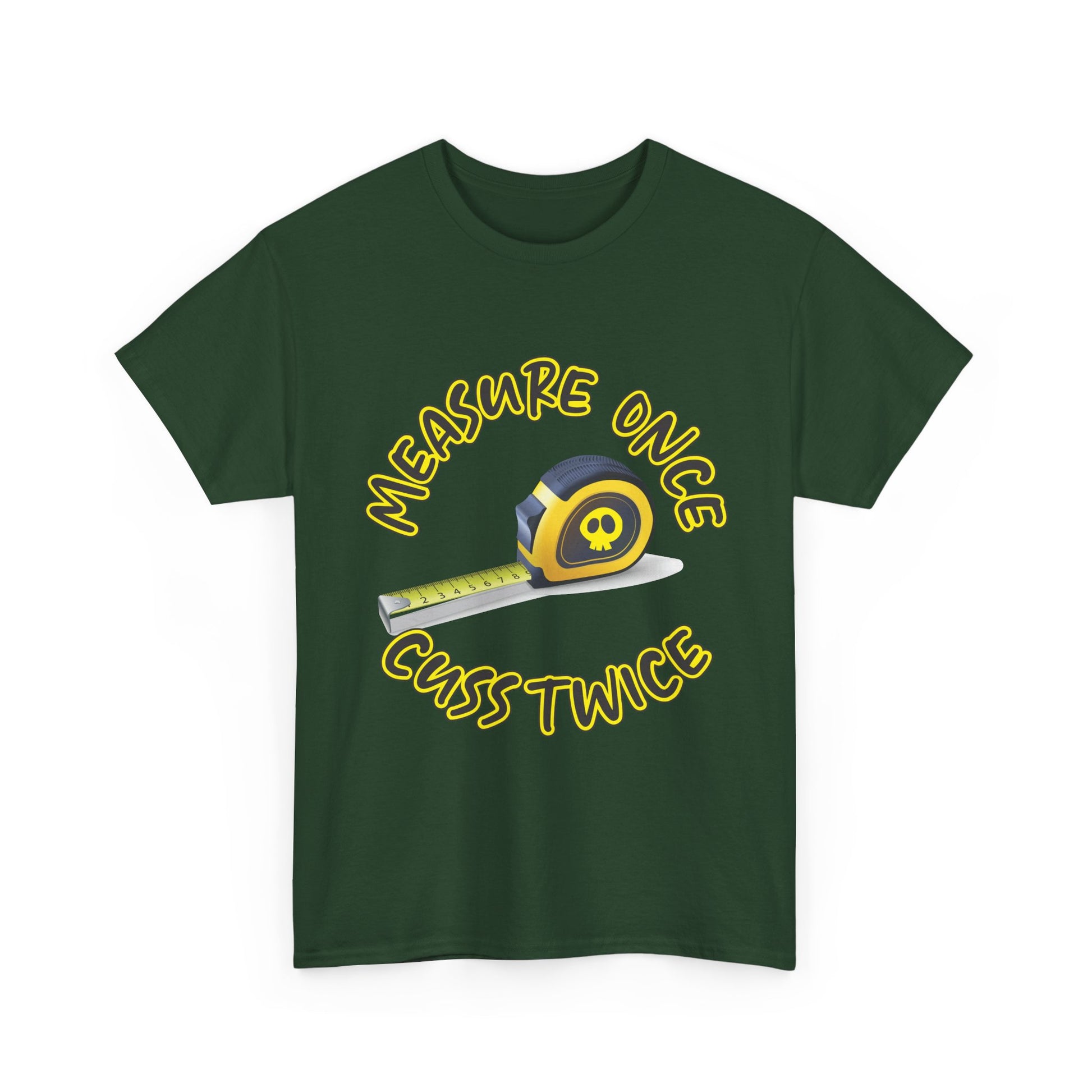 This tee speaks to hands-on makers who laugh at their own shortcuts. A soft, sturdy cotton shirt printed with a playful tape-measure graphic and the cheeky line “Measure Once, Cuss Twice,” it lands light-heartedly between workshop banter and weekend projectwear. Wear it while marking lumber, tinkering in the garage, or swapping stories over coffee with fellow builders. The relaxed crew neck and classic fit let you move freely when you’re bending, reaching, or carrying gear. The print’s bold yellow and black pop off the clean white fabric, making the design readable from across the workbench. Thoughtful details—like shoulder twill, a tear-away label, and a collar that keeps its shape—mean this shirt feels as reliable as the tools you reach for first. It’s made with durable, ethically-sourced cotton and printing techniques that keep lines crisp through washes and wear.